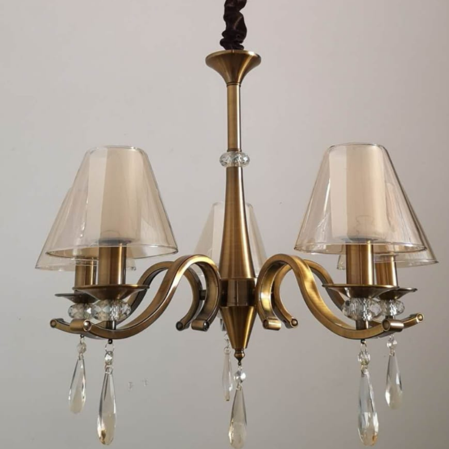 Antique Aura Chandelier E14*5, a masterful blend of classic sophistication and modern technology. This stunning chandelier features five E14 LED bulbs, beautifully encased in delicate glass shades, suspended from an intricate antique bronze frame.