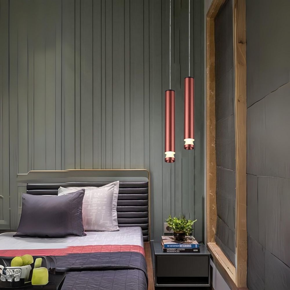 The Astral Gleam is a sophisticated pendant light, boasting a sleek cylindrical design with a rich mahogany finish that radiates elegance. Its minimalist aesthetic is complemented by the warm, ambient glow it casts, making it a perfect addition to modern and contemporary spaces.
