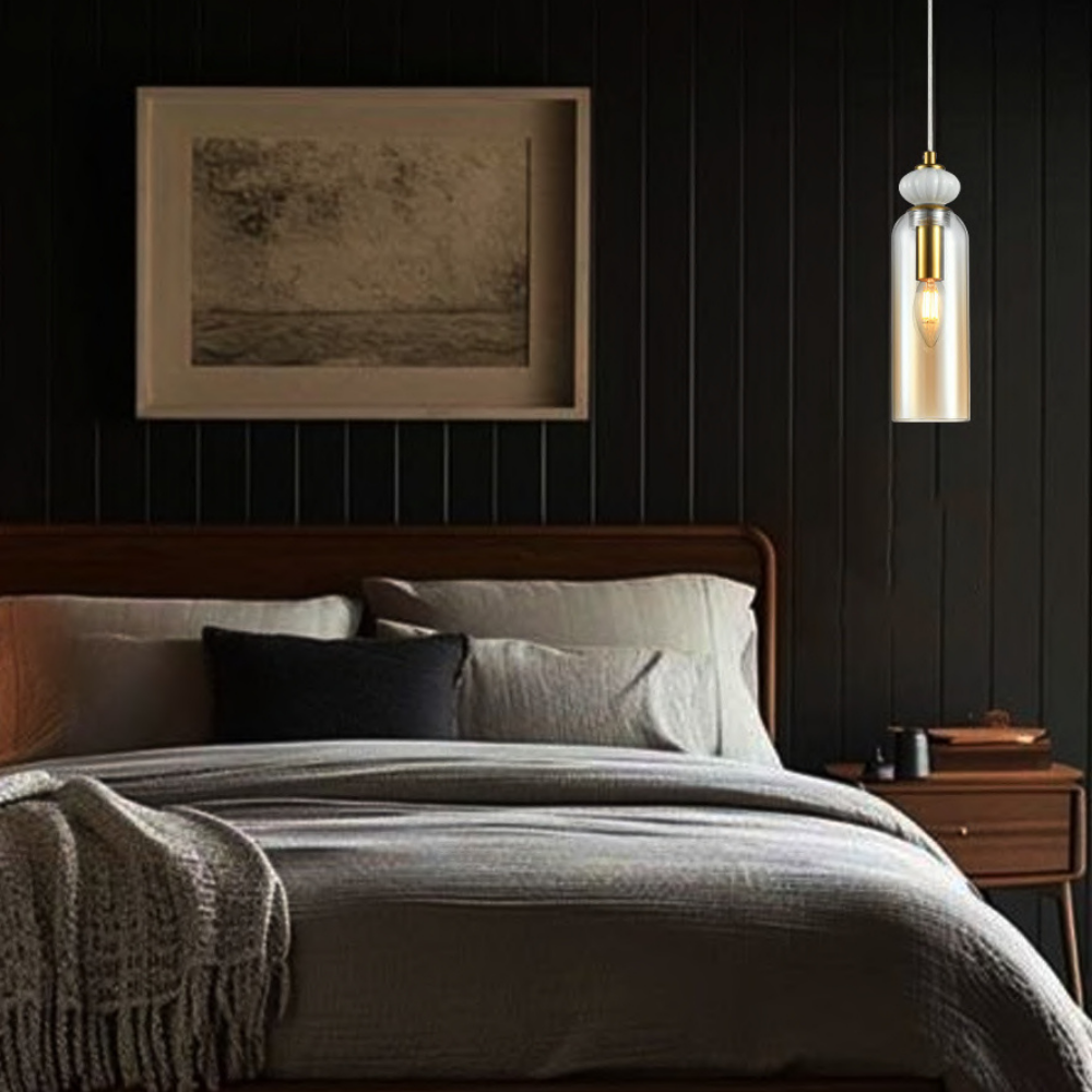 Add a classic touch to your space with this antique brass pendant light featuring an amber glass shade and ceramic accents. Designed to create a warm and inviting ambiance, it complements both traditional and eclectic interiors beautifully.