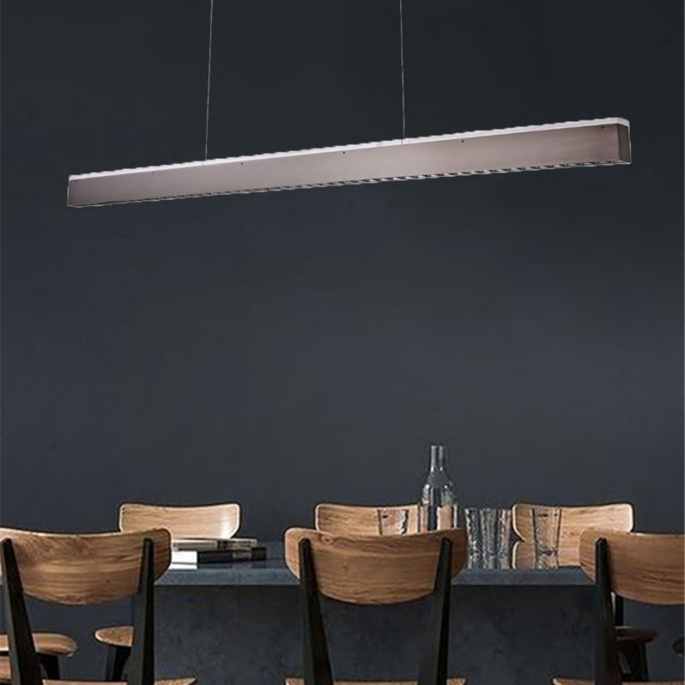 This modern linear pendant light features a LED and COB combination that delivers neutral 4000K illumination, perfect for various indoor spaces. Finished in Brushed Gun Black, it adds a sleek and contemporary touch to any room.