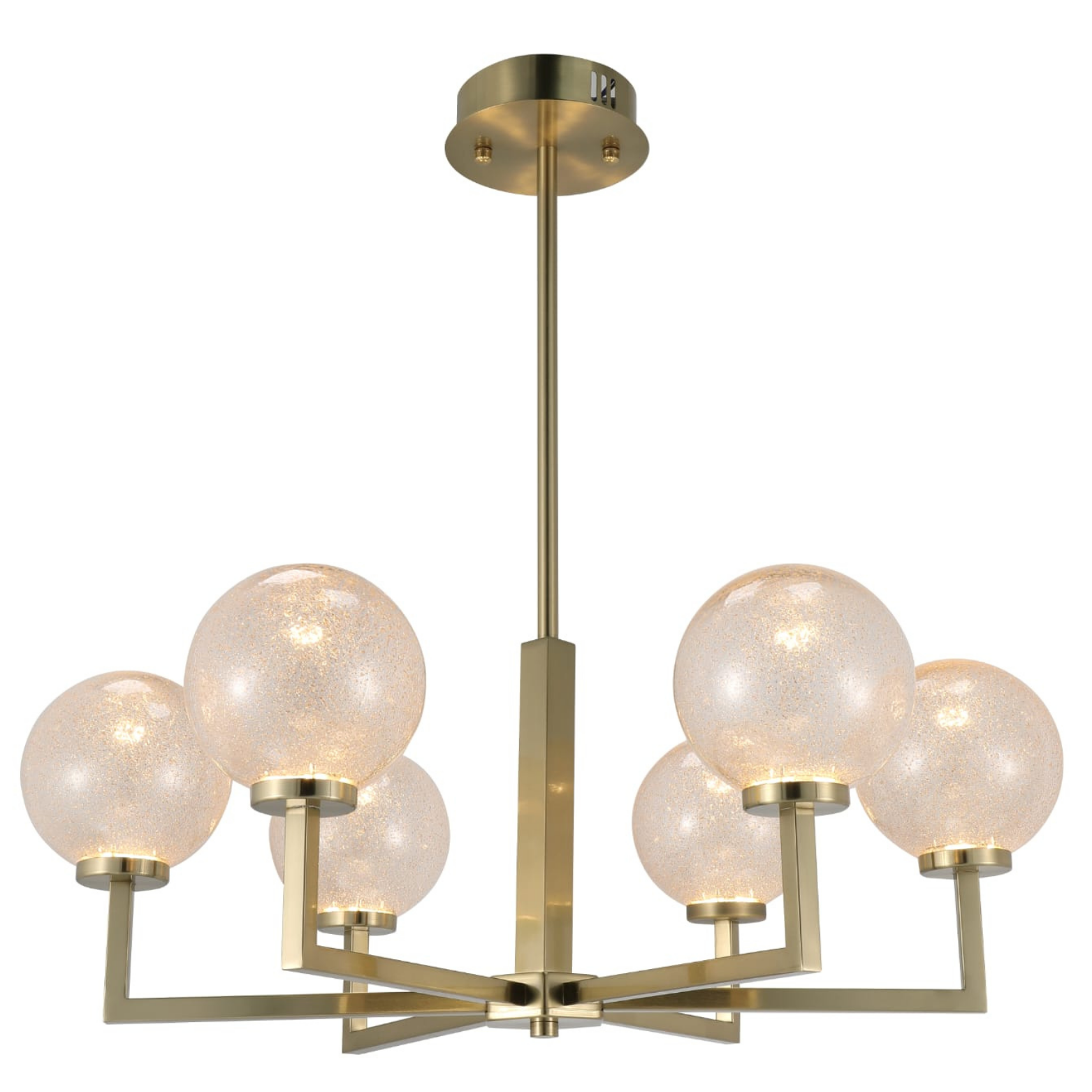 With six LEDs at 3000K, this fixture combines satin gold with air bubble glass for a radiant, golden glow ideal for cozy and stylish living spaces.