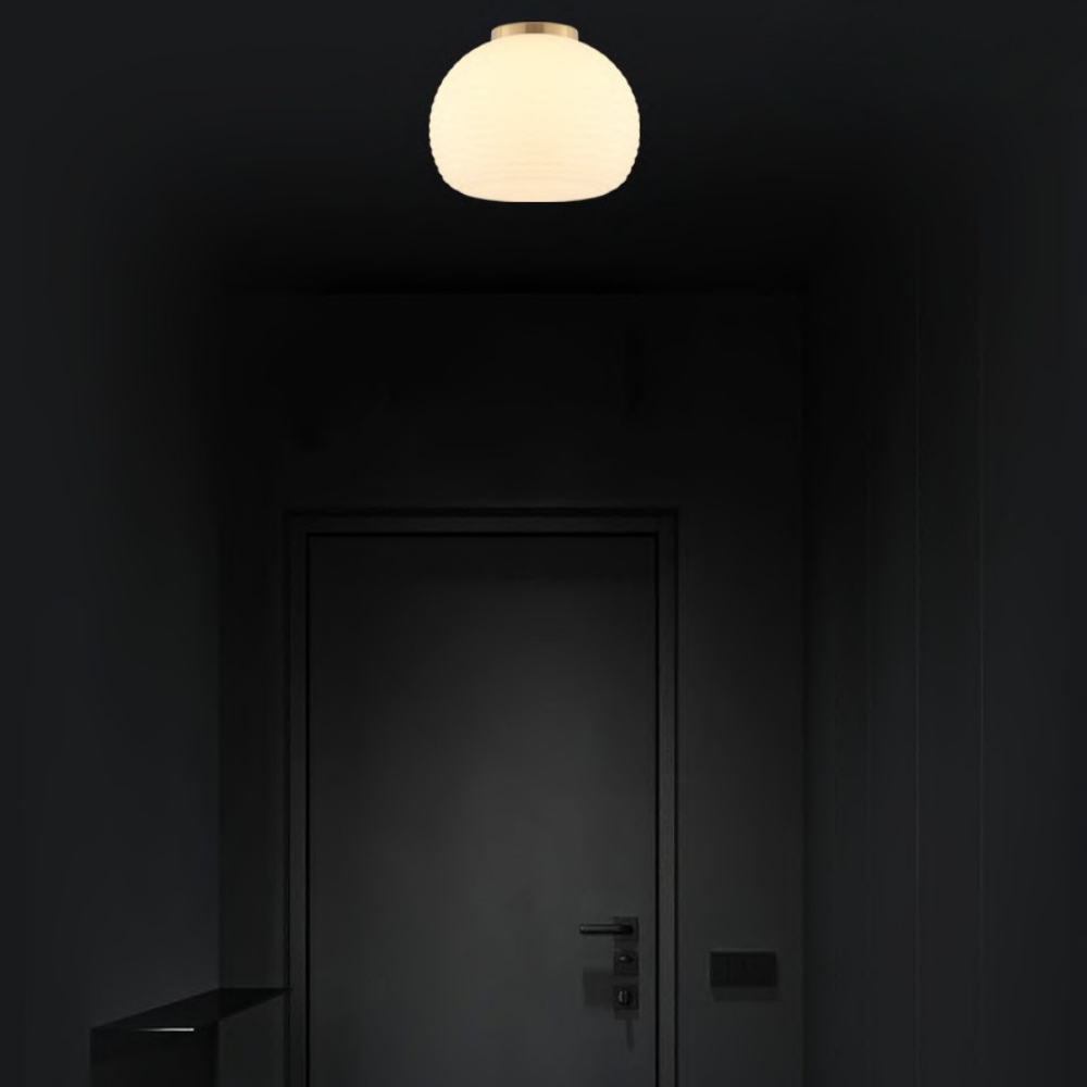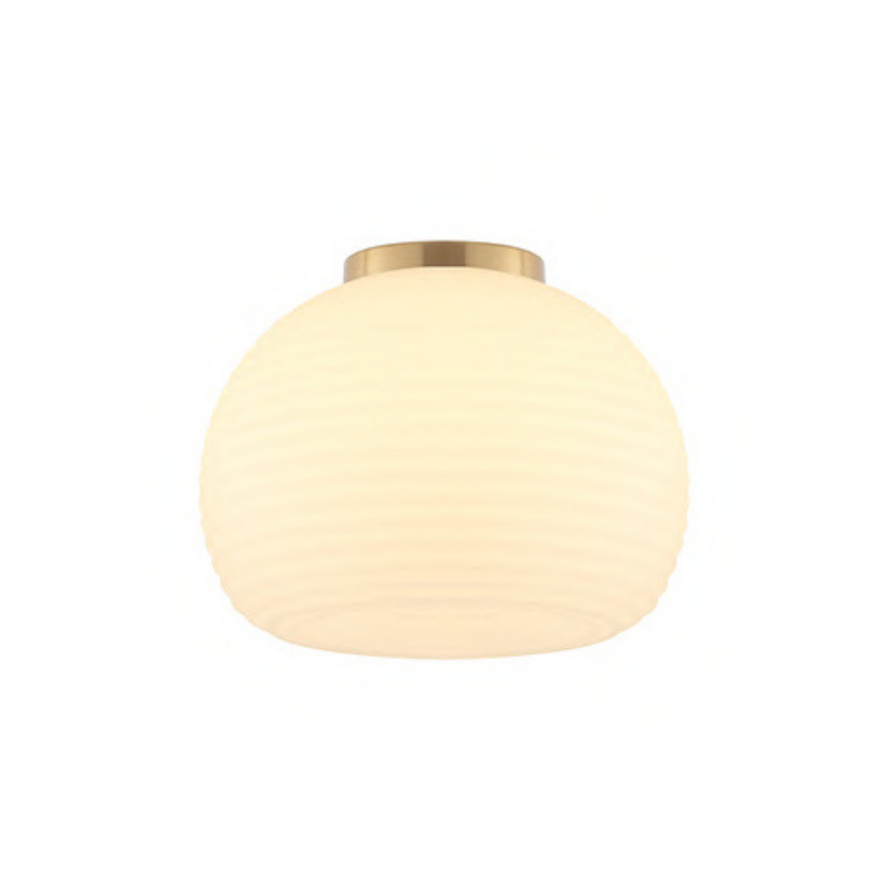 Featuring brass and milky glass with a horizontal grain texture, this fixture exudes warmth. It uses a single E27 lamp to provide gentle, ambient light. Ideal for intimate, cozy spaces requiring subtle illumination. Adds texture and character to your decor. Perfect for classic or transitional interiors.
