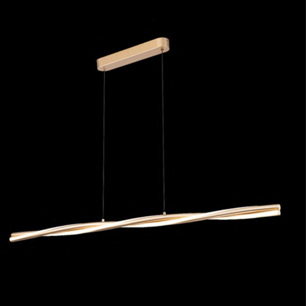 A sleek linear pendant light features a LED that provides 3000K warm lighting to create a comfortable setting. The gold finish adds a touch of richness to both formal and casual rooms.