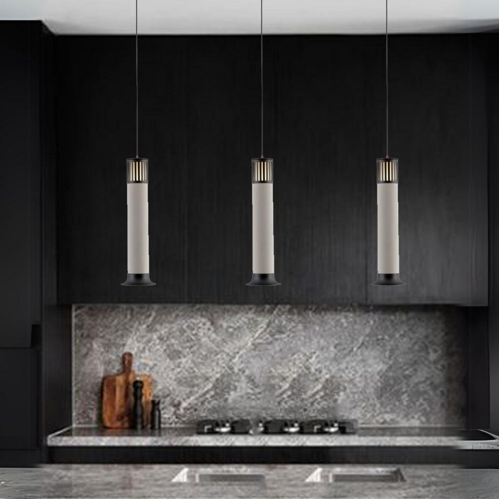 The Ecliptic Harmony is a sophisticated pendant that marries minimalism with elegance. Featuring a sleek black top cylinder, it gracefully suspends a white luminary encased in a ribbed golden holder, offering an ambient glow that dances between modern and classic aesthetics.