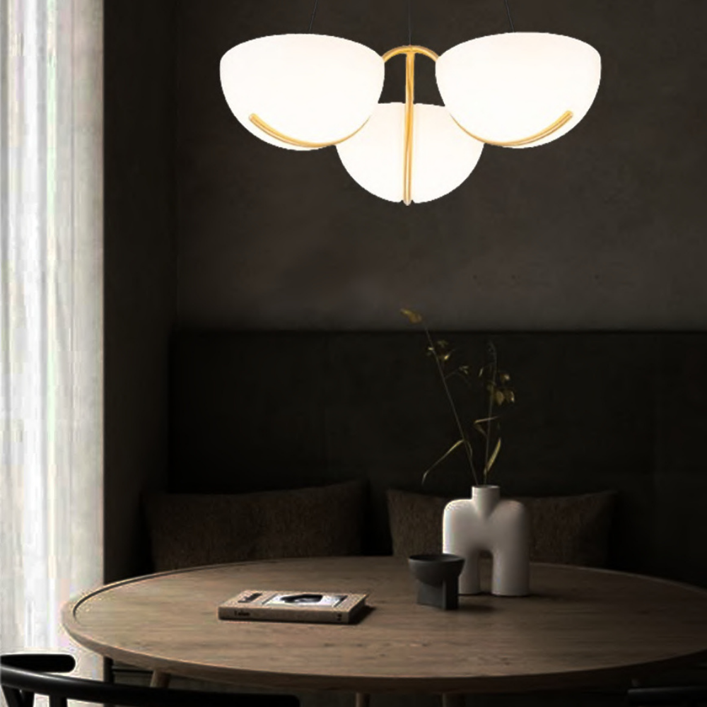 A contemporary pendant light features a powerful LED that provides warm 3000K illumination, perfect for living or dining spaces. Finished in Brushed Gold with clean Glass accents, it brings elegance to modern d?cor.