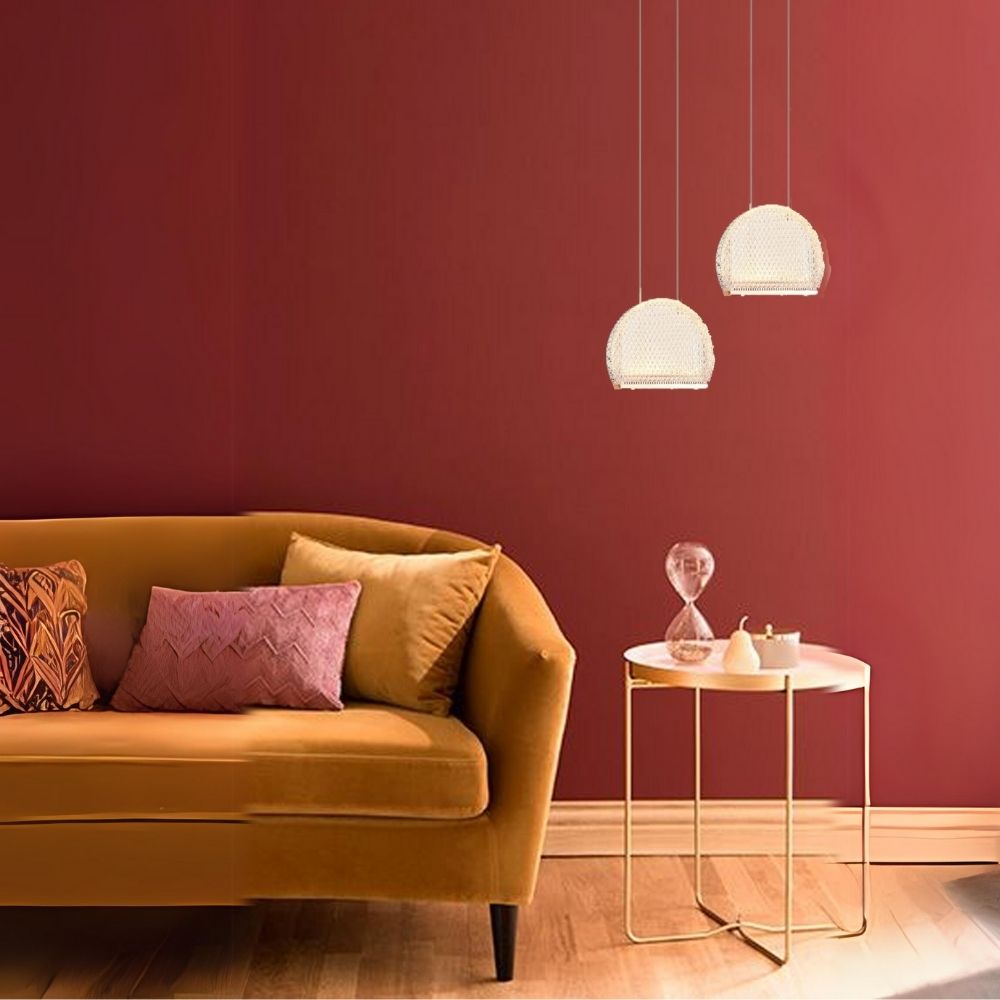 The Glimmering Elegance Pendant is a sophisticated lighting piece, featuring a delicate golden canopy that suspends a beautifully crafted pendant. Encased in an intricate mesh of golden beads, the pendant illuminates spaces with grace, casting mesmerizing patterns of light and shadow that elevate the ambiance of any room. Whether hung above a dining table, in an entryway, or as a focal point in a living area, this pendant exudes timeless elegance and adds a touch of luxury to any interior.