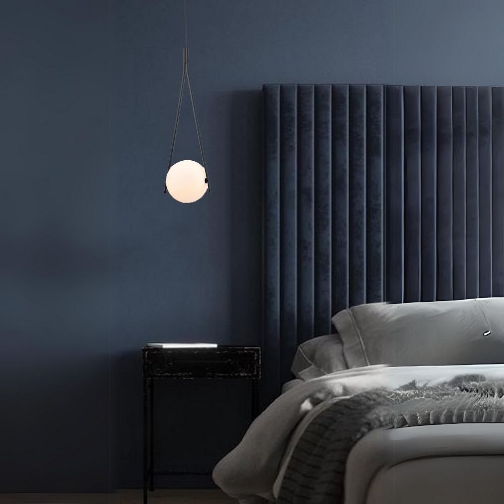 The Luminous Radiance Pendant is an epitome of modern elegance and functionality, featuring a minimalist black suspension cord that gracefully holds a luminous orb. The orb diffuses soft light, creating a serene ambiance reminiscent of the gentle glow of the moon, making it a perfect addition to any contemporary space.