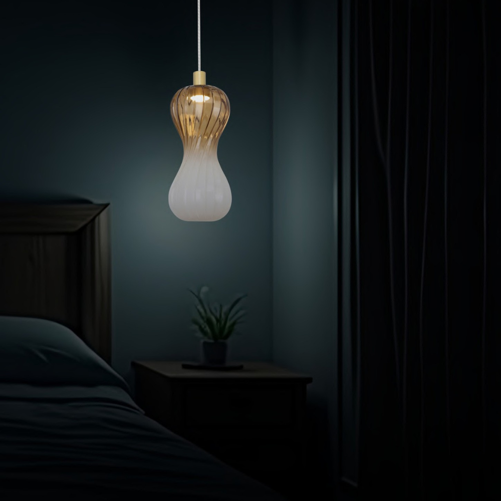 The Pendant Light blends modern aesthetics with a touch of warmth, thanks to its elegant combination of black, amber, and white glass. Its soft 3000K illumination creates a cozy and inviting ambience, perfect for homes, restaurants, and contemporary interiors. Designed with a sleek D140 × H345 × 1800 mm form, it adds vertical elegance without overpowering the space. The amber-tinted glass offers a refined glow, enhancing the light’s decorative appeal. Whether used as a single highlight or grouped for a layered effect, this pendant light elevates any setting with style, depth, and sophistication.