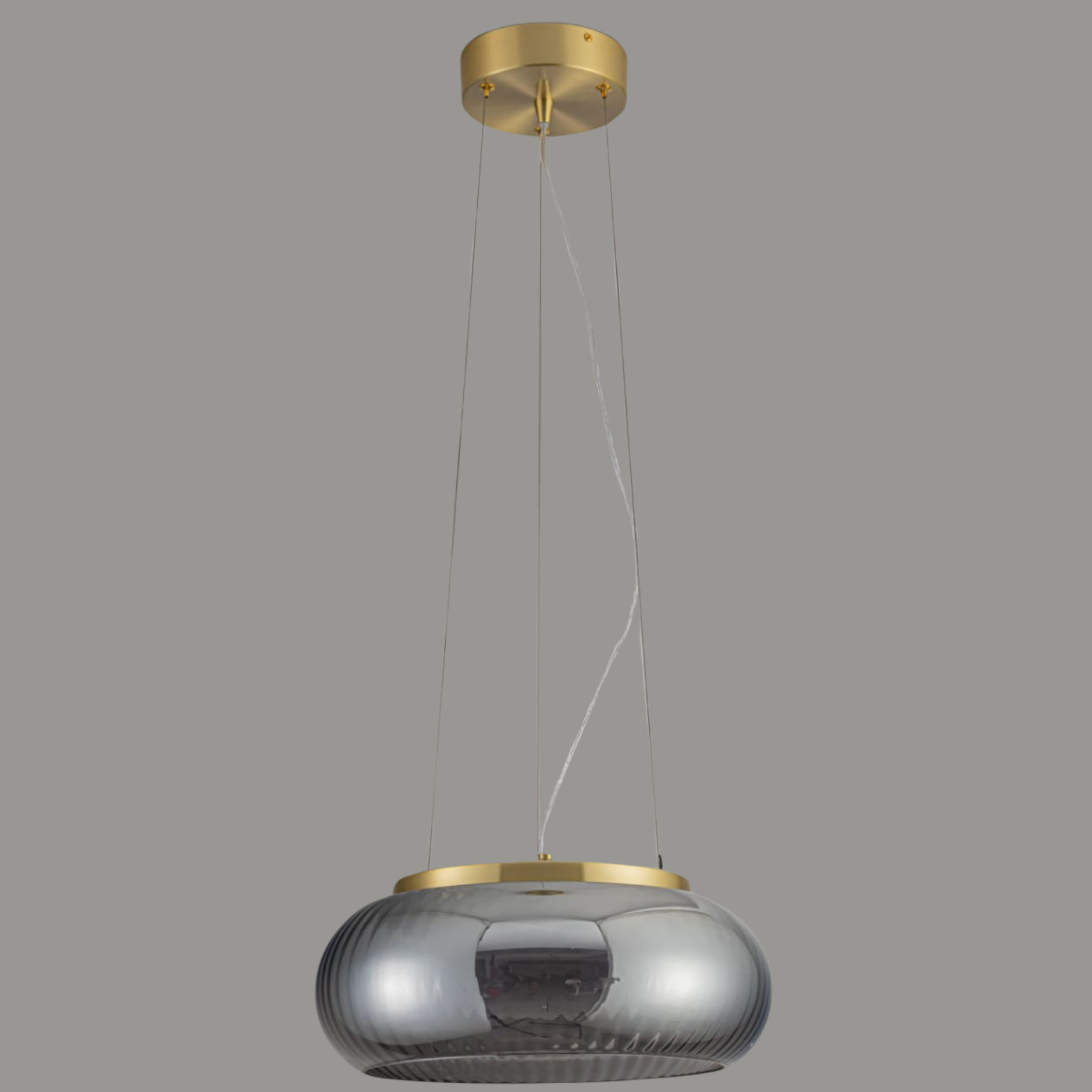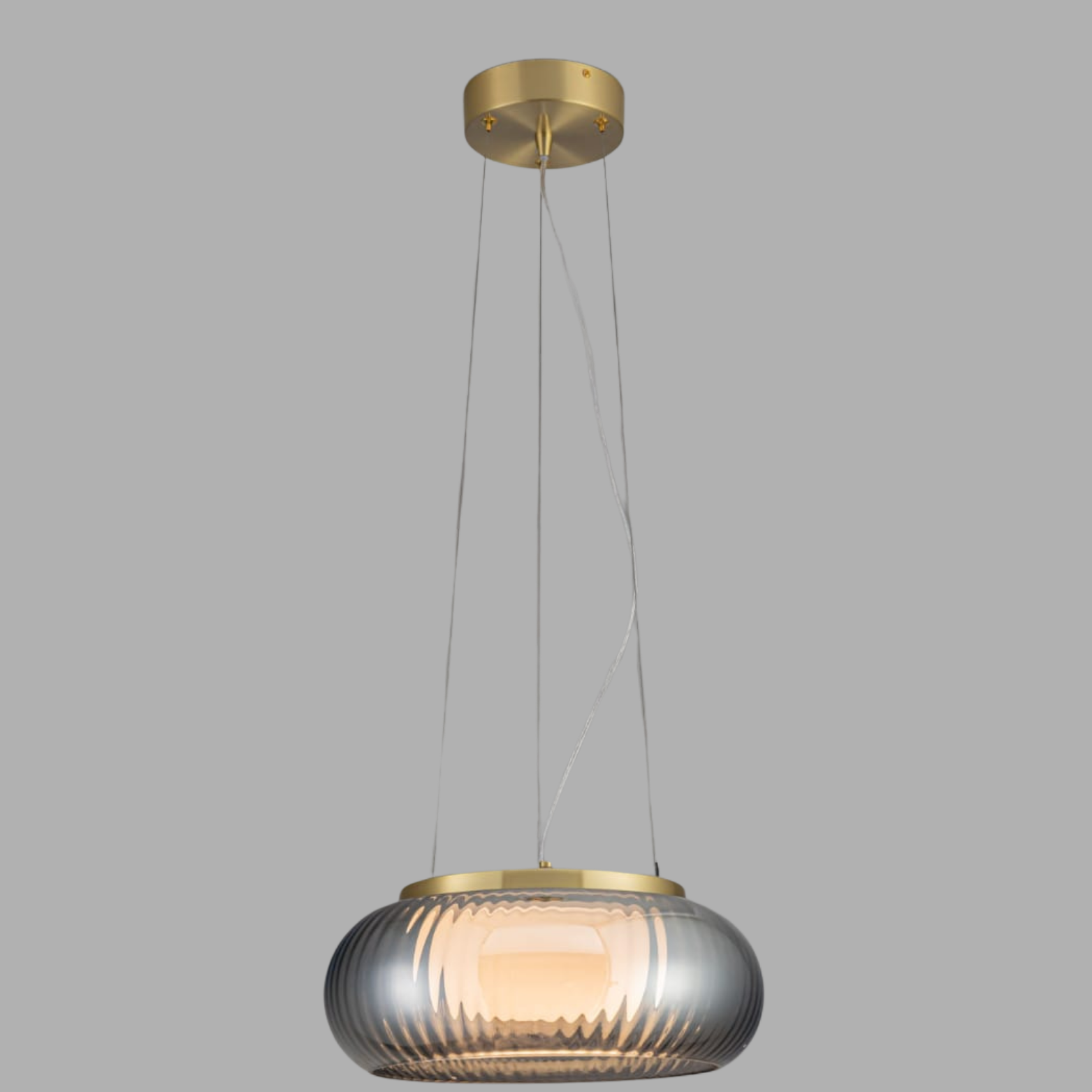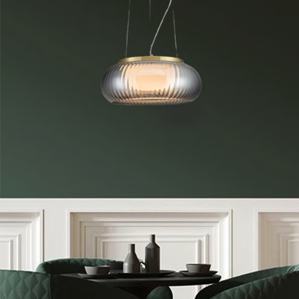 A minimalist pendant light featuring an LED that emits warm 3000K light, ideal for creating a relaxed atmosphere. Finished in Matt Brass with Smokey and Opal White glass, it combines visual contrast with elegant design.