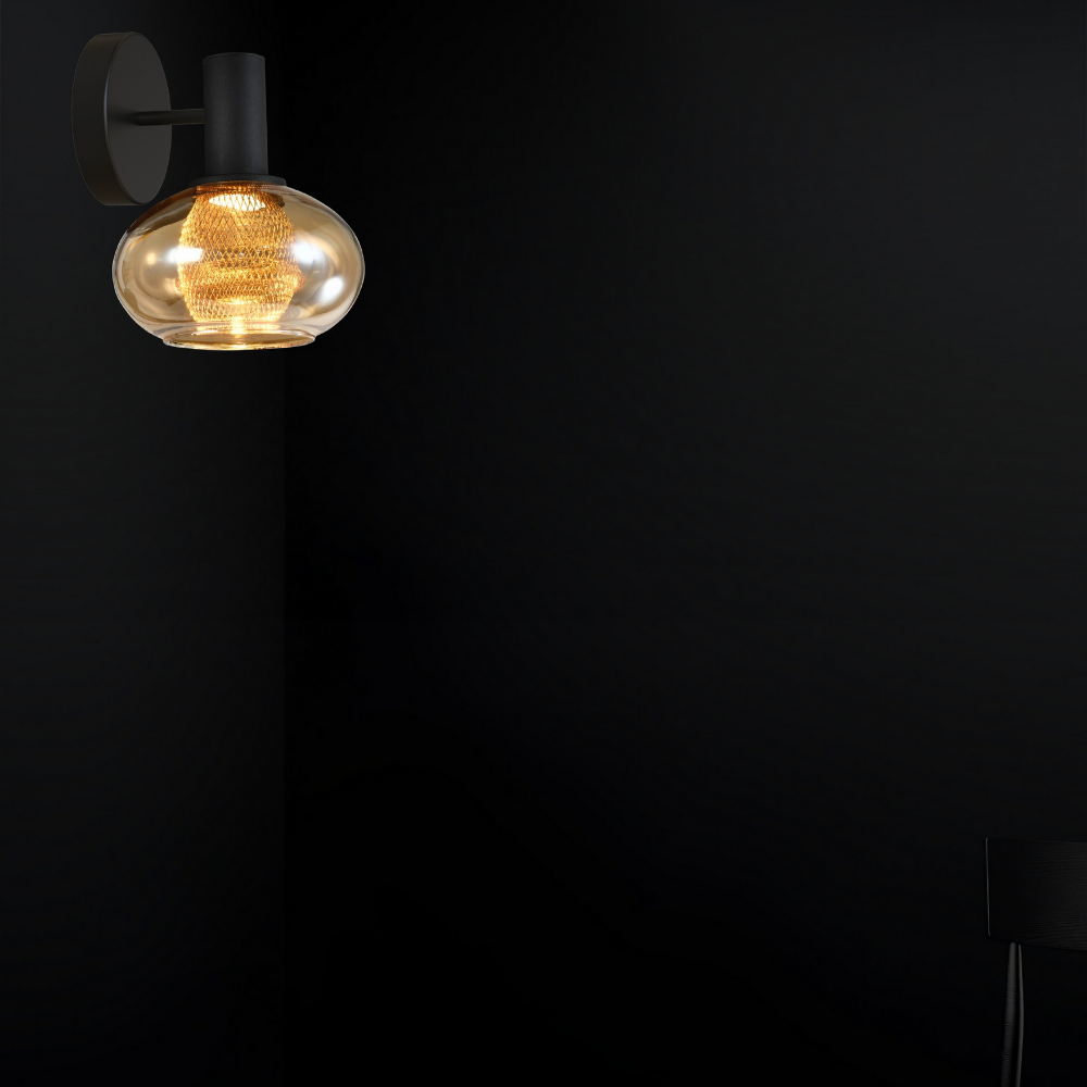 This modern wall light adds a bold yet warm touch to your interiors with its matt black finish paired with amber glass. The 3000K light emits a soft, comforting glow that creates a relaxed and inviting atmosphere, ideal for bedrooms, living spaces, corridors, or reading corners. With compact dimensions of 160 × 100 × 160 mm, it fits neatly into smaller areas while still making a stylish statement. The contrast between the sleek black body and the warm amber glass brings depth and character to the design, making this wall light a perfect choice for contemporary spaces that value both style and subtle ambience.