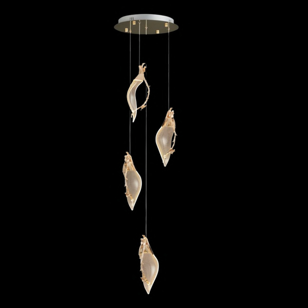 Modern CCT LED hanging light with LEDs and France gold accents paired with sleek acrylic, casting a 3000K glow perfect for adding glamour to minimalist interiors.