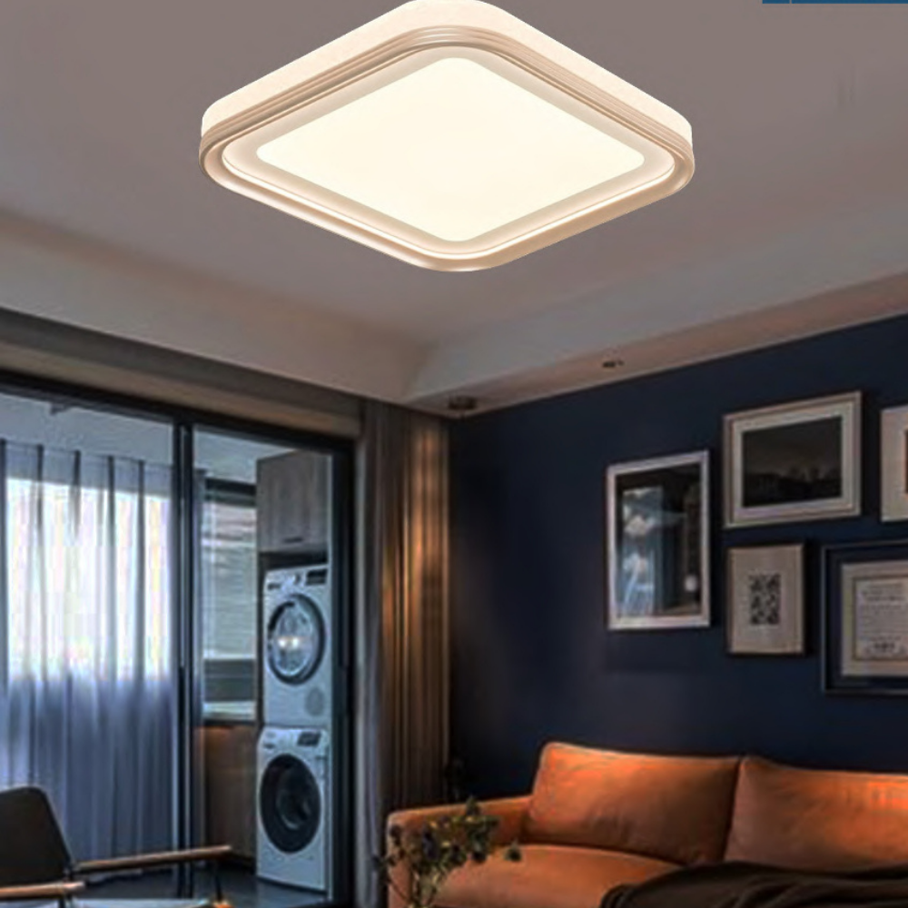 Rose gold and coffee color combination featuring 3000+4000K dimmable LED. Square design adds a modern touch with ample lighting. Perfect for upscale interiors requiring statement fixtures. Combines style with functional lighting. Enhances room ambiance with warm tones.