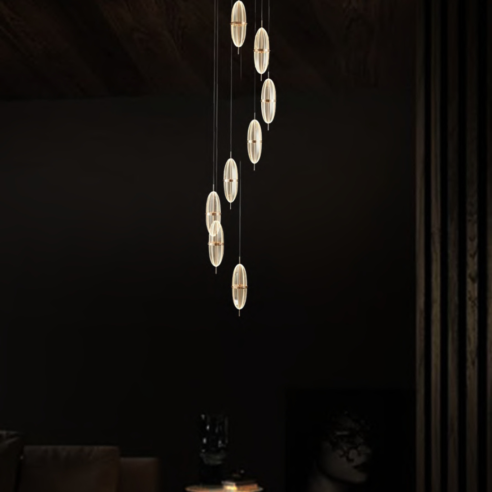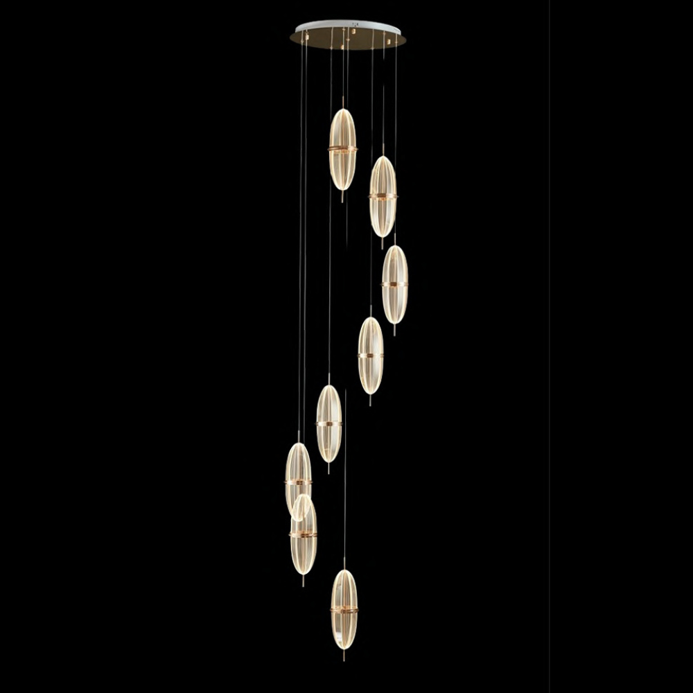 Elegant CCT LED hanging light designed with a powerful LED and warm 3000K tone. France gold details and acrylic artistry ensure this fixture delivers on both illumination and opulence, creating a timeless visual impression.