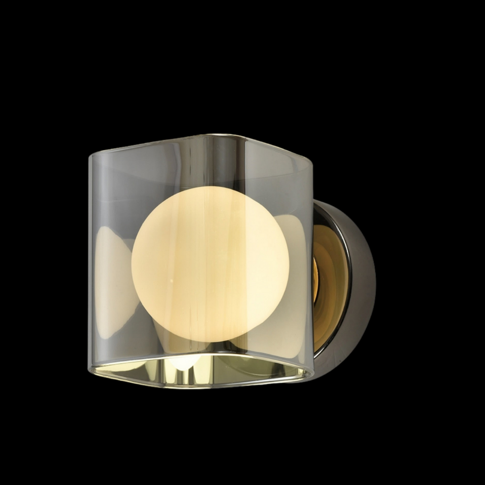This contemporary wall light is crafted to make a subtle yet striking design statement in modern interiors. Featuring a single G9 lamp holder, it provides focused illumination that works beautifully as both ambient and accent lighting. The sophisticated titanium black finish is elevated with touches of French gold, while the combination of smoke and opal glass creates a layered lighting effect that feels refined and atmospheric. With compact dimensions of 110 mm width, 100 mm depth, and 140 mm height, it is ideal for bedrooms, living spaces, corridors, or stylish hospitality settings. The mixed glass diffuses light softly, reducing glare while adding visual depth and elegance. Designed with quality materials and thoughtful detailing, this wall light blends modern aesthetics with practical performance for a polished interior look.