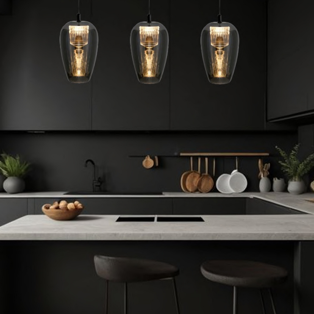 Elevate your d?cor with this stylish pendant light featuring elegant smoke glass combined with sparkling crystal acrylic accents. Equipped with a warm 3000K LED and a reliable Eaglerise driver, it casts a cozy glow that enhances any modern living space with subtle luxury.
