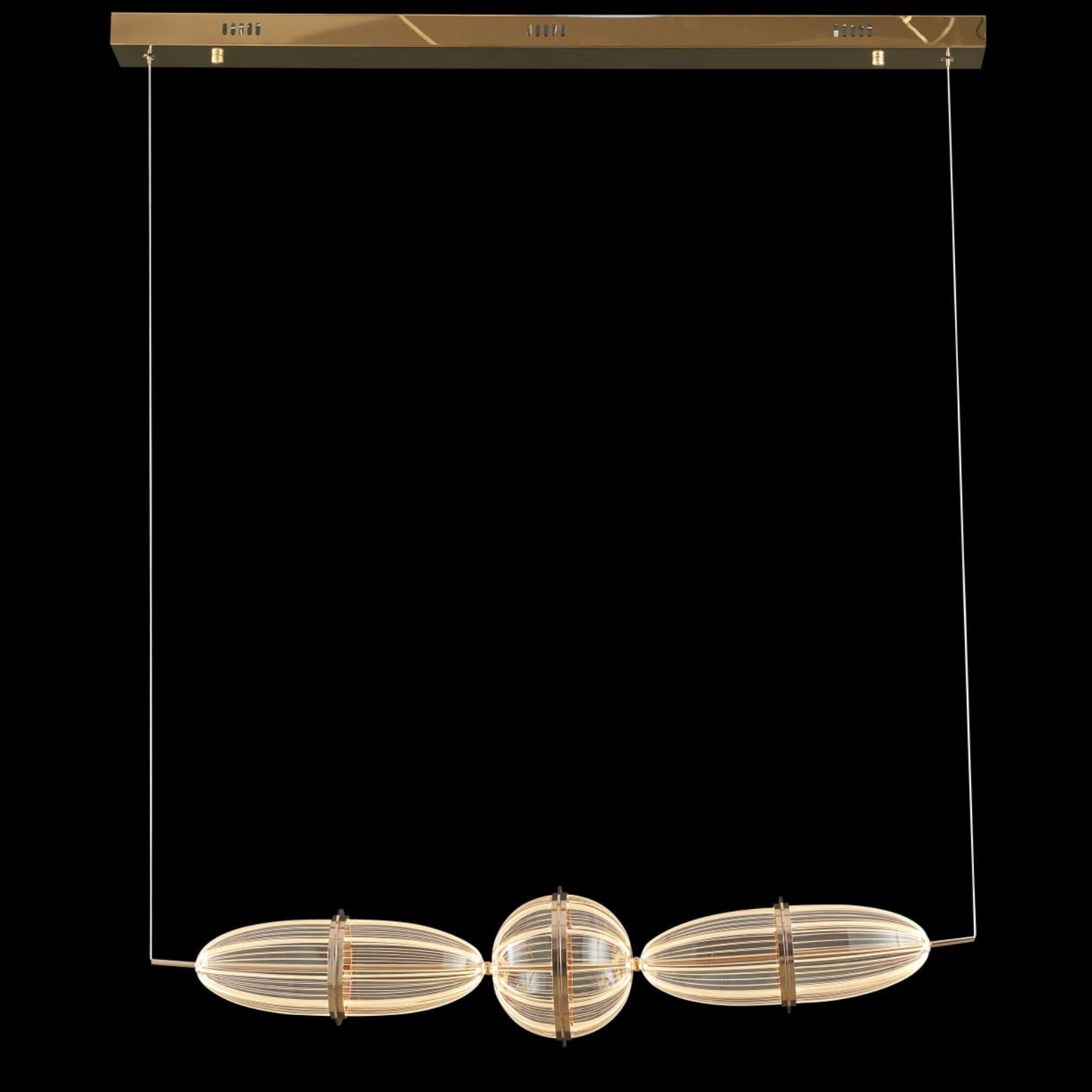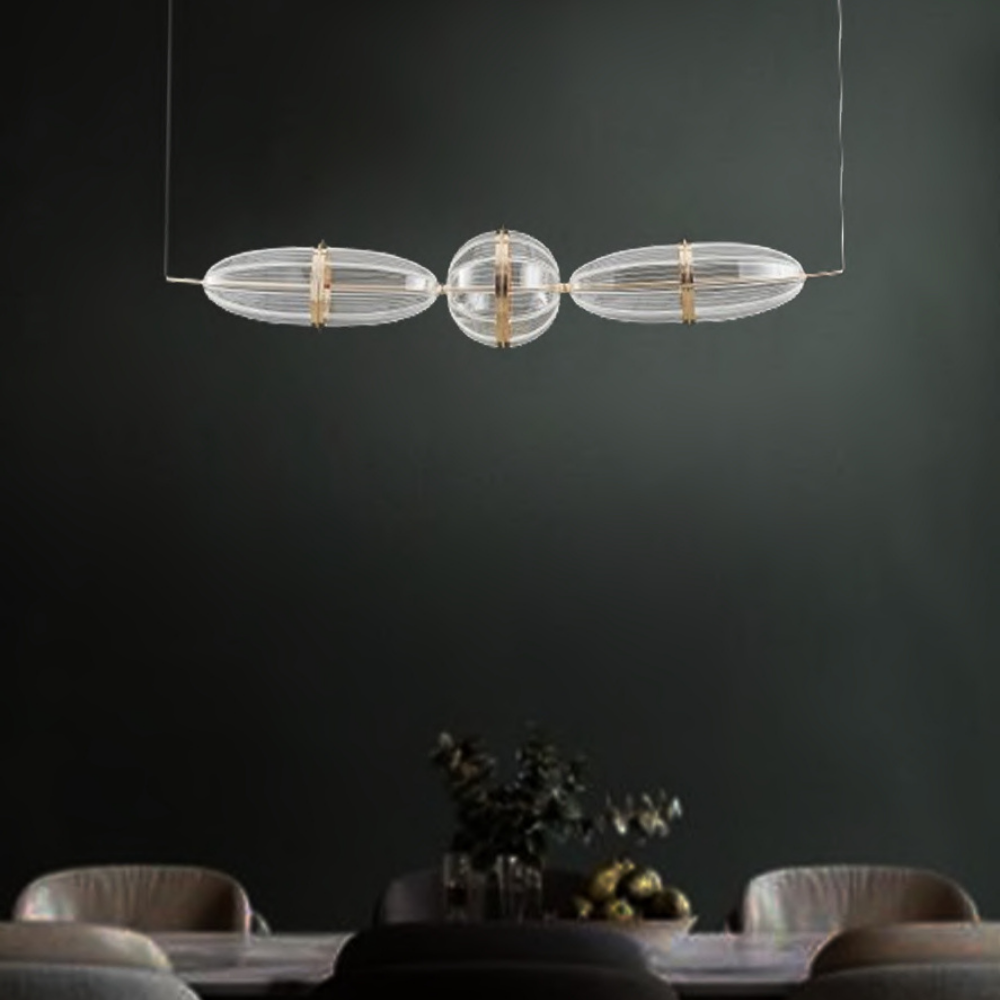 A modern linear pendant light featuring a LED that emits a consistent 3000K glow, perfect for ambient lighting. Finished in France Gold with acrylic accents for a stylish touch.
