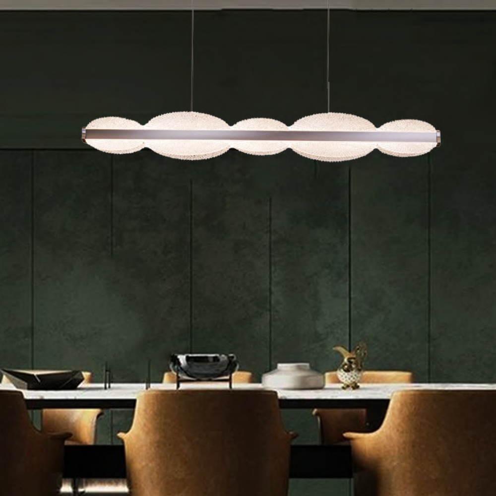 This pendant features smart control and three color temperatures for versatile lighting. Its 96W LED and Black-Brush Grey finish create a bold design ideal for media rooms, open-plan areas, or professional offices.